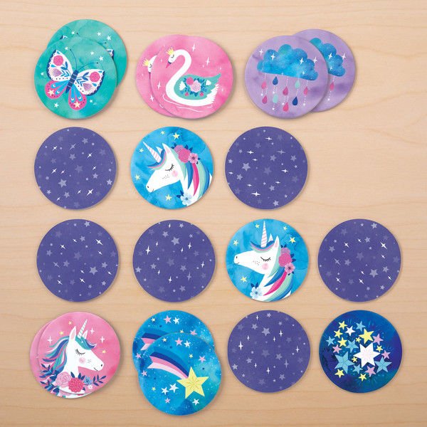 Wszystkie kółeczka połóż na stole obrazkami do dołu. Każdy gracz kolejno odkrywa dwa elementy, czy znalazł parę? Jeśli tak kartoniki są Twoje, jeśli nie zakryj obrazki ale zapamiętaj co na nich było, przyda się do następnej rundy. Teraz żetony odkrywa kolejny gracz. Tu liczy się pamięć i spostrzegawczość. Wygrywa ten z graczy, który nazbiera najwięcej par.