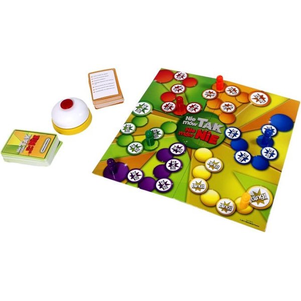 W tej szalonej, rodzinnej grze musisz wykazać niebywałą wyobraźnią. Musisz tak odpowiadać na pytania by nie wypowiedzieć dwóch słów "tak lub "nie" jeżeli Ci się uda przesuwasz swoje pionka na planszy, jednak gdy tak się nie stanie, któryś z graczy musi jak najszybciej wcisnąć dzwonek! Wygrywa ten kto dotrze do ostatniego pola.