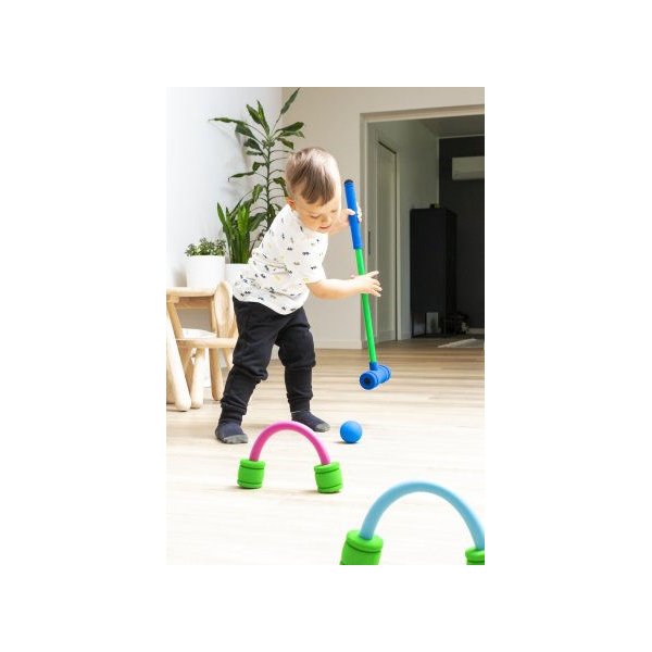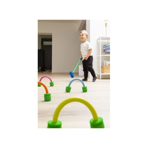Soft Croquet marki Tactic Games to gra plenerowa dla całej rodziny! Rozstaw bramki i spróbuj wygrać, przeprowadzając młotkiem piłkę przez każdą z nich! Gdy pogoda nie dopisuje nie załamuj rąk, w tę grę zagrasz także w domu!