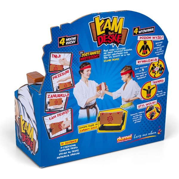 Dumel jak zwykle zachwyca swoimi produktami! Tym razem przedstawia nam grę, która wprowadzi maluchy w świat karate! Deska pozwoli trenować koncentrację oraz refleks, więc ćwicz, aby doskonalić swoje umiejętności i pokonać przeciwnika. Wystarczy wykonywać odpowiednie komendy, które sygnalizowane są za pomocą światełek. Zabawka umożliwia nam zabawę w 4 wyzwania, które zapewnią wspaniałą rozrywkę. Polska wersja językowa sprawia, że nie będzie problemu ze zrozumieniem komend, a możliwość gry do 10 osób pozwoli zaprosić do niej towarzyszy.