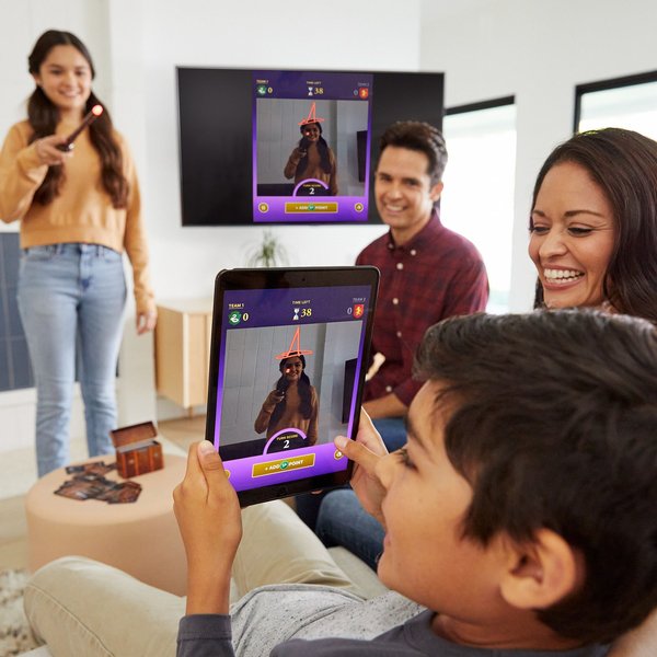 To idealny pomysł na rodzinny wieczór pełen magii, rysunków i wspólnego zgadywania! Mnóstwo radości, śmiechu i główkowania, o co może chodzić w narysowanym w powietrzu obrazku. Za pomocą magicznego pisaka w kształcie różdżki Harrego Pottera uczestnicy zabawy rysują hasła wylosowane z kart zawartych w zestawie. Reszta graczy ma za zadanie odgadnąć, o co chodzi. Wszyscy dzielą się na drużyny inspirowane domami ze szkoły magii (Gryffindor, Hufflepuff, Slytherin lub Ravenclaw) i rywalizują o zwycięstwo. Do zabawy potrzebujesz jeszcze bezpłatnej aplikacji na smartfona Pictionary Air™ na smartfona lub tablet (wymagany system iOS lub Android).