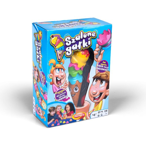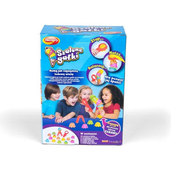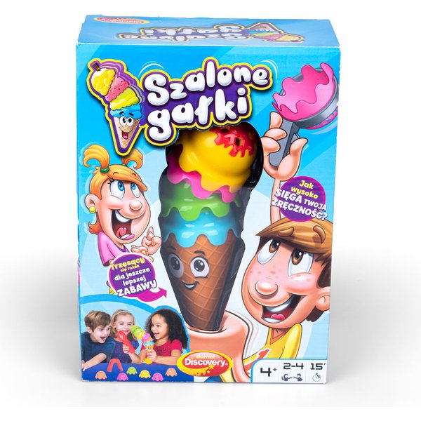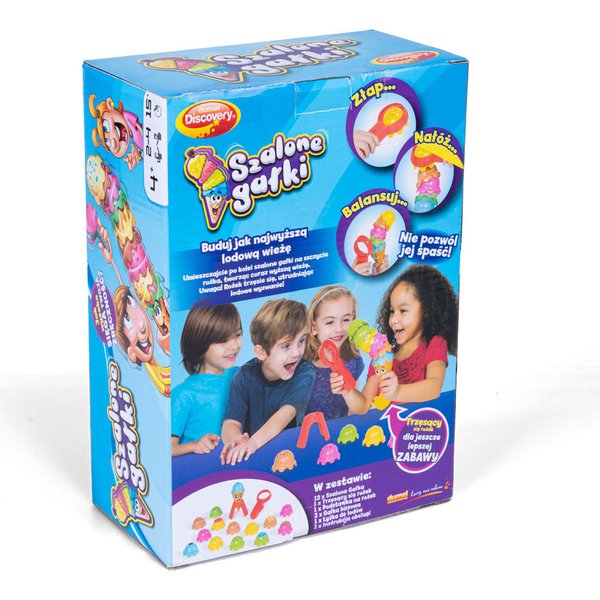 Wesoła gra od Dumel, która wymaga dużej zręczności i skupienia! Zadanie jest proste! Gracze muszą zbudować jak największą, lodową wieżę. Brzmi prosto prawda? Jednak nic nie jest takie łatwe jak się wydaje! Ten uśmiechnięty rożek... trzęsie się, co jest utrudnieniem podczas zabawy. Kto przewróci wieżę, ten odpada, a pozostali gracze walczą dalej. Zabawna gra, która zapewni wiele godzin wspaniałej zabawy.