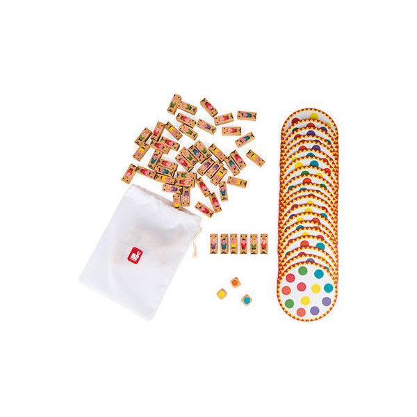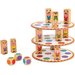 - zestaw składa się 20 kartonowych plansz, 57 drewnianych figurek akrobatów, 3 drewniane kostki