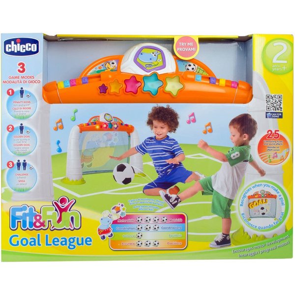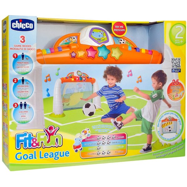 Dzięki interaktywnej zabawce Chicco Fit & Fun Grająca Bramka Twoja pociecha może spróbować swoich sił w piłce nożnej bez wychodzenia z domu!