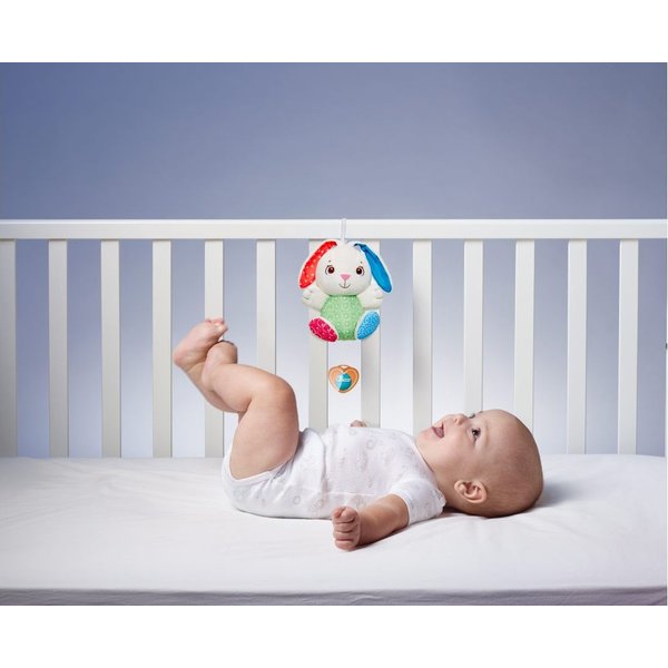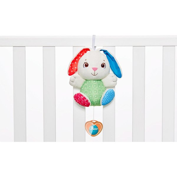 To nie wszystko, króliczek to grająca pozytywka, wystarczy pociągnąć za ogonek by usłyszeć kojącą melodyjkę.