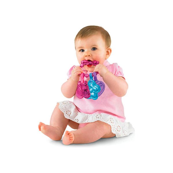 Wszystkie małe dziewczynki uwielbiają ładne drobiazgi. Ten gryzaczek - grzechotka to modny dodatek do grzechotania i gryzienia. Na pewno ucieszy każdą małą modnisię!