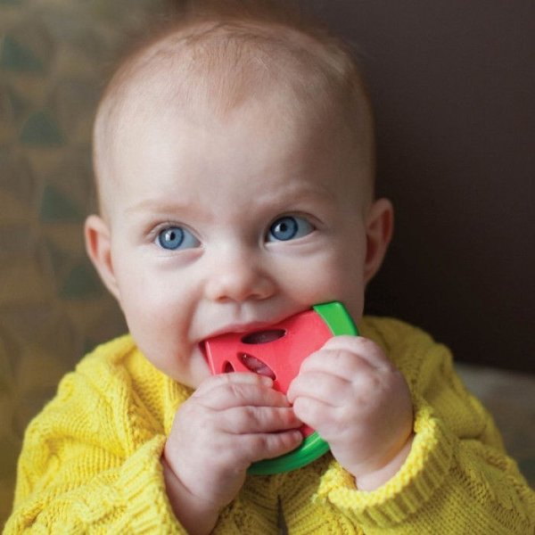 Gryzak zaprojektowany jest przez stomatologa dziecięcego. Chłodzi ból dziąsełek oraz łagodzi nacisk na jamę ustną.