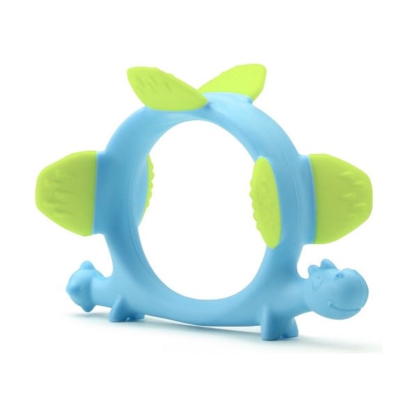 Gryzaczki to niezbędny produkt przy ząbkowaniu maluszka. Potrafią załagodzić ból i swędzenie dziąsełek. Jednak ten dinozaur to nie jest taki zwykły. Wykonany został z jednego odlewu co pozwoli uchronić go przed pęknięciem i zbieraniem się bakterii. Posiada tekstury o różnym stopniu twardości dzięki czemu dziecko będzie mogło wybrać, która część bardziej mu odpowiada i przynosi ukojenie. Kształt powoduje, że maluch bez problemu złapie i utrzyma gryzaczek w ręce przy okazji ćwicząc odruch chwytania i rozwijając zdolności motoryczne. Aby efekty były jeszcze lepsze można schłodzić go w lodówce.