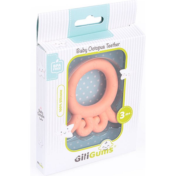 Bolesne ząbkowanie to czas na gryzaki marki Giligums. Estetycznie wykonany model w kształcie ośmiorniczki spodoba się każdemu maluszkowi. Wykonany został ze spożywczego silikonu bez szkodliwego BPA i charakteryzuje się dużą trwałością, dzięki czemu możesz bez obaw podać go maluszkowi.