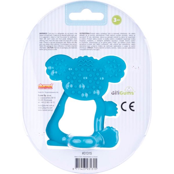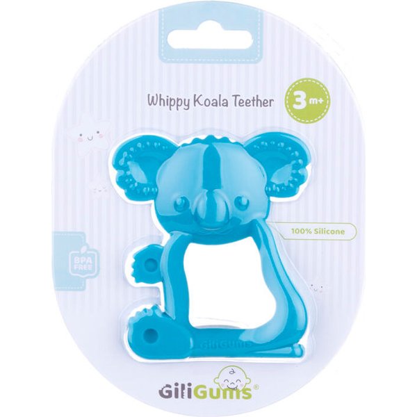 Silikonowy koala z wypustkami od Giligums, który przyszedł z misją ukojenia bólu podczas ząbkowania. Aby maluch nie miał problemów z utrzymaniem gryzaka w rączkach posiada on specjalny otwór, który umożliwi pewny chwyt. Różnorodne faktury pozwolą również na rozwój zmysłu dotyku.Wykonany został z miękkiego silikonu, co sprawia, że jest w pełni bezpieczny dla maluszka.