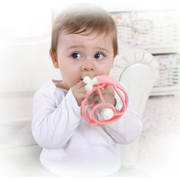 Gryzaczek w kształcie ślimaka ma przyjazny kształt i do tego grzechocze! To świetny gadżet na okres ząbkowania maluszka. Będzie on koił obolałe dziąsełka, a dźwięk grzechotki uspokoi naszą pociechę. Czółka ślimaka kształtem są zbliżone do smoczka i nie podrażniają delikatnych dziąseł. Jego rozmiar został dopasowany do małych rączek naszej pociechy, by ułatwić samodzielne trzymanie.