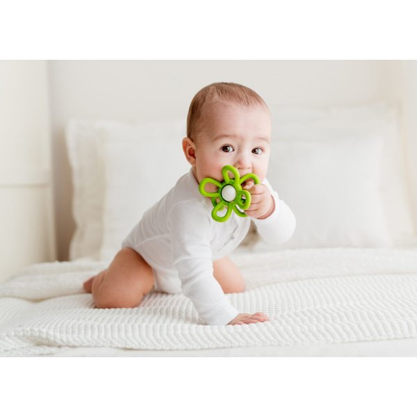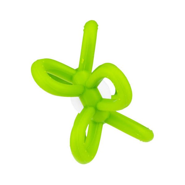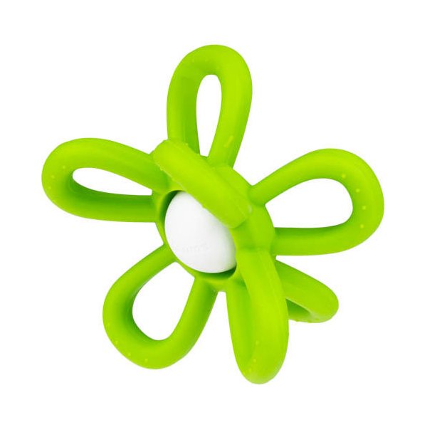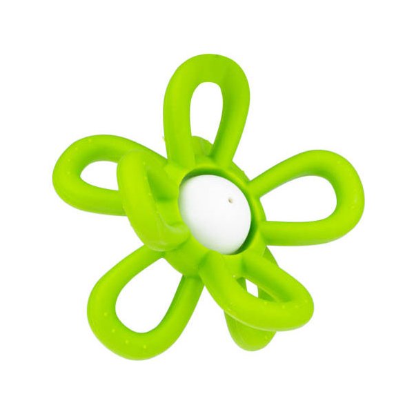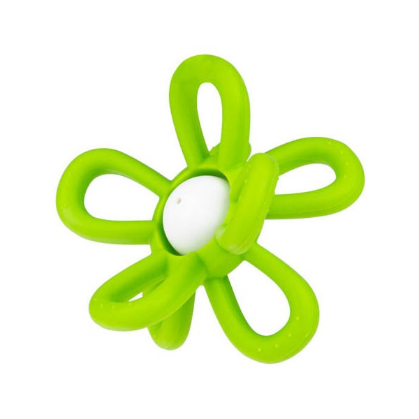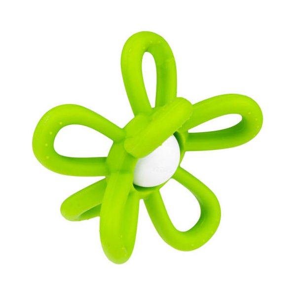 Model ten posiada dużą, grzechoczącą kulkę z płatkami kwiatka posiadającymi zróżnicowane faktury. Elastyczne i miękkie płatki nadają się do gryzienia i są bardzo łatwe do trzymania. Dziecko może ćwiczyć prawidłowy chwyt, a podczas bolesnego ząbkowania może także wkładać zabawkę do buzi, aby poczuć ulgę w przykrej dolegliwości. Całość wykonana została z bezpiecznego dla dziecka materiału, odpornego na uszkodzenia.