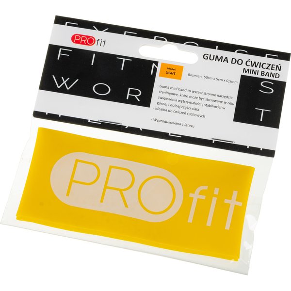 Mini band marki Profit, to doskonałe uzupełnienie każdego treningu domowego. Daje ona możliwość wykonania treningów ogólnorozwojowych, oporowych, rehabilitacyjnych oraz aerobowych, gdzie poprawisz swoją kondycję, postawę oraz sprawność fizyczną.