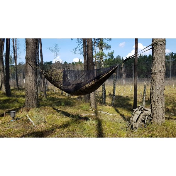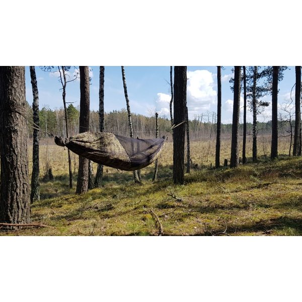 Hamak wykonany został ze wstępnie impregnowanego jedwabiu spadochronowego, który jest wytrzymały, a także zapewnia odpowiednią przewiewność i jest odporny na wilgoć. Zapewnia to wysoki komfort użytkowania. Model ten posiada 3 m długości oraz 1,45 m szerokości, dzięki czemu zapewniona jest wystarczająca ilość miejsca. Maksymalne obciążenie to 200 kg. Hamak wyposażony został w dwie taśmy typu "tree hugger" do wieszania, dwa karabinki oraz linkę z przeznaczeniem na cięciwę do podwieszania. Model ten posiada zintegrowaną moskitierę, która zapewni odpowiednią ochronę przed insektami oraz zapobiega przyczepianiu się gałązek. Siatka zajmuje około 2/3 moskitiery, a pozostała część jest osłonięta materiałem, który ochroni przed promieniami słonecznymi i wilgocią. Hamak wyposażony został również w kieszeń nad głową, która zapewni wygodne przechowywanie najpotrzebniejszych drobiazgów. Model ten świetnie sprawdzi się w lasach, nad morzem, jak i w ogrodzie.