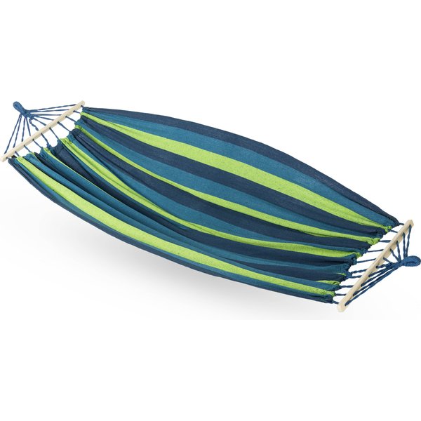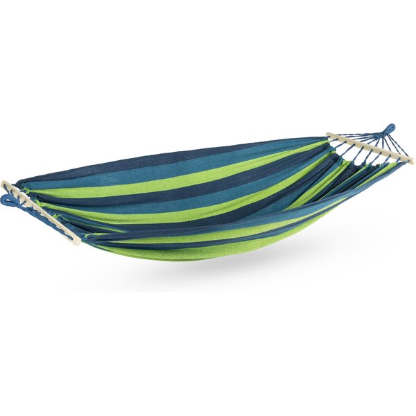 Doskonale sprawdzi się w ogrodzie, by radośnie bujać się, oglądając bezchmurne niebo oraz gałęzie drzew. Hamak wystarczy przywiązać do drzewa lub słupków. Nie potrzebujesz żadnych dodatkowych akcesoriów. Tkanina, z której został wykonany jest bardzo wytrzymała, ze względu na dodatek poliestru. Równocześnie materiał jest miły w dotyku, więc nie powoduje podrażnień i pozwala skórze oddychać. Możesz być pewien, że będzie to doskonały wybór do Twojego ogrodu lub na wycieczkę na łono natury.