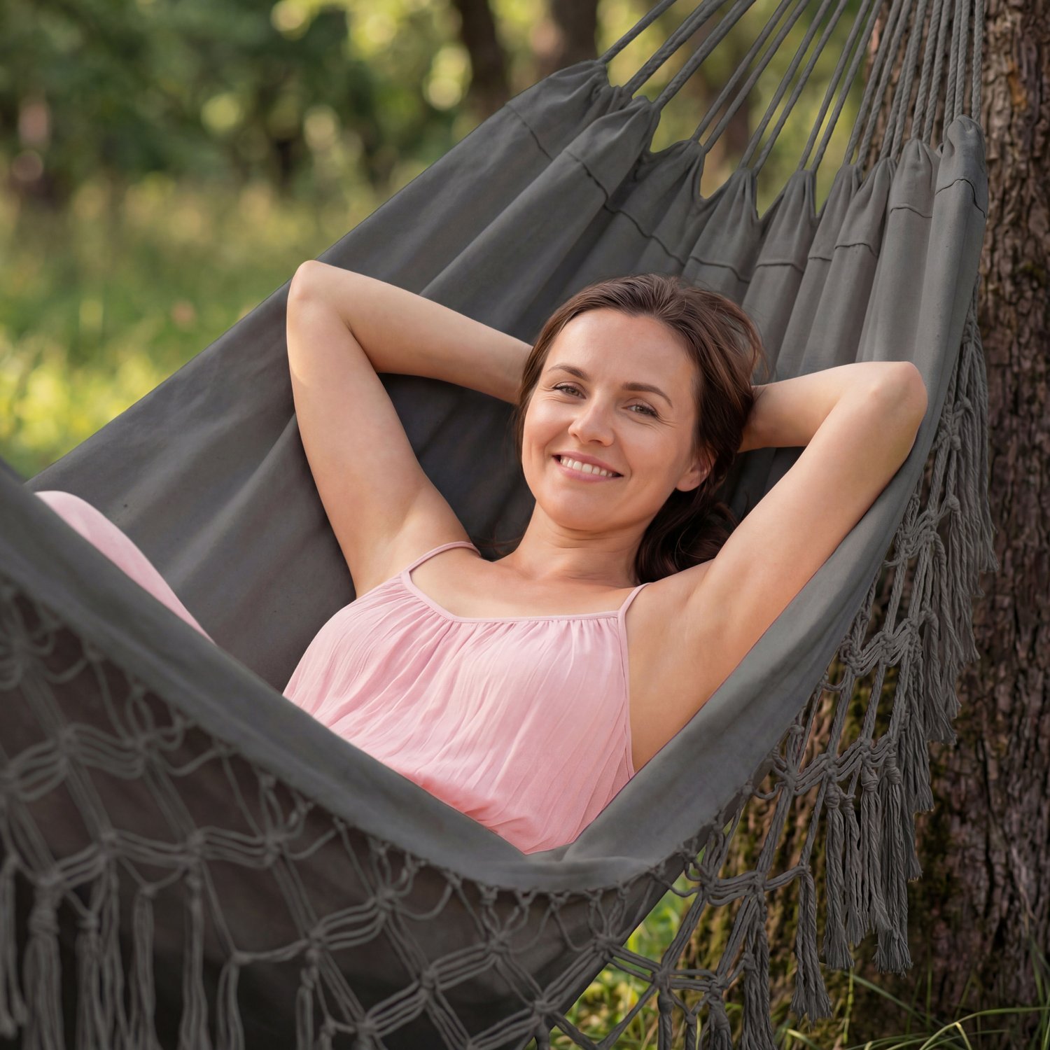 Konstrukcja z grubo plecionych, bawełnianych lin sprawia, że korzystanie z niego jest w pełni bezpieczne dla użytkownika. Hamak zapewnia nośność aż do 200 kilogramów, dlatego mogą korzystać z niego nawet dwie osoby. Z montażem poradzi sobie każdy, nawet mniej wprawiony użytkownik, gdyż jest on bardzo intuicyjny. Wystarczy zaczepić go o silne gałęzie i już można odpoczywać na łonie natury.