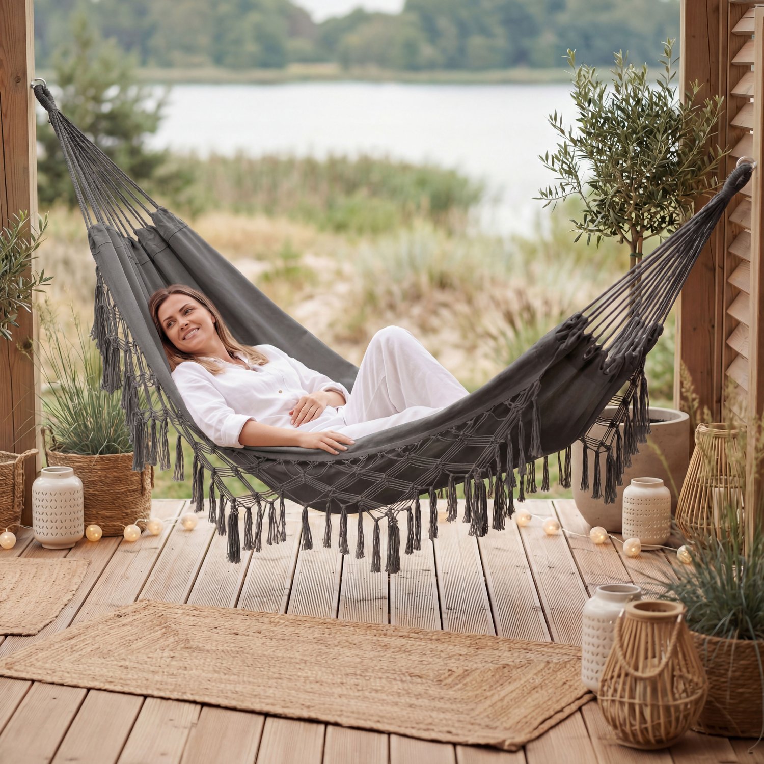 Hamak ogrodowy z frędzlami Boho Sois XXL Outtec