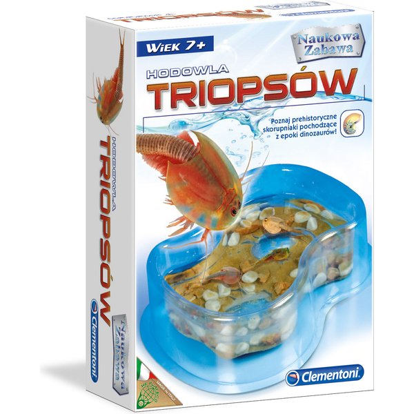 Zestaw posiada wszystkie niezbędne rzeczy potrzebne do stworzenia hodowli Triopsów - prehistorycznych stworzeń, które były na naszej planecie na długo przed nami! Te stworzenia przystosowane są do życia w wodzie w bardzo niestabilnych warunkach - żyją bardzo szybko, już w ciągu pięciu dni osiągają dojrzałość, po czym produkują bardzo dużą ilość nowych jajek. Jaja mogą czekać nawet kilka lat na to, by zalała je woda. W wodzie budzi się nowe życie.
