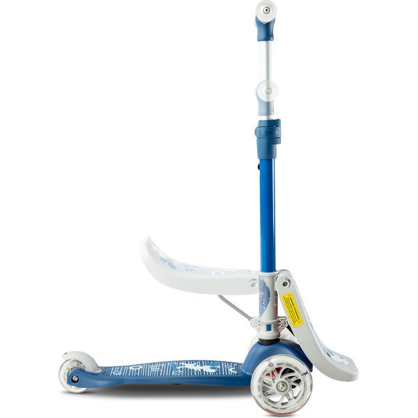 Hulajnoga wyposażona została w składane siedzisko, które wspomoże malucha podczas pierwszych jazd i pozwoli mu odpocząć. Dzięki temu korzystać z niej może również mniejsze dziecko, co gwarantuje jej długie użytkowanie. Hulajnoga świeci, gumowe koła zasilane dynamem sprawią, że dziecko poczuje się wyjątkowo, a dodatkowo poprawią widoczność malucha.
