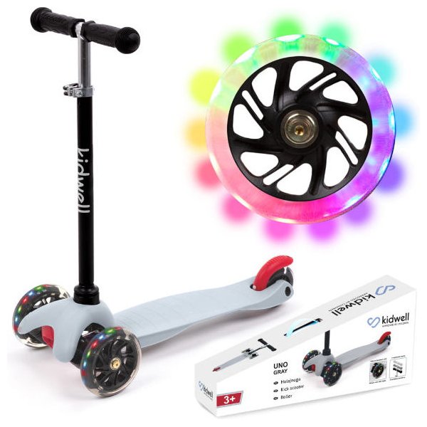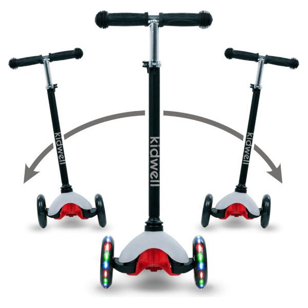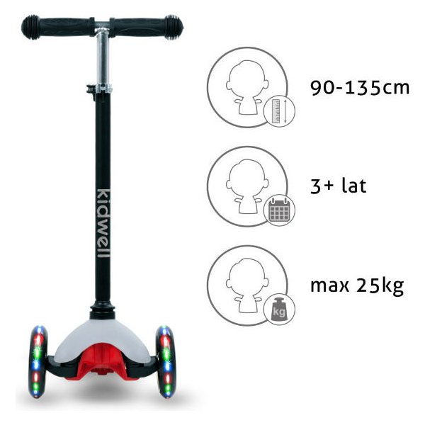 Hulajnoga Uno od Kidwell, którą maluch będzie kierował za pomocą balansu ciała, co pozwoli na wypracowanie lepszej równowagi i koordynacji. Wyposażona została w trwałą i wytrzymałą konstrukcję, która gwarantuje długie użytkowanie i bezpieczeństwo. Trzy koła zapewnią odpowiednią stabilność, dzięki czemu dziecko bez obaw będzie chciało przemierzać kolejne kilometry. Dodatkowo posiadają one wbudowane oświetlenie LED, co z pewnością doda atrakcji podczas jazdy. Regulacja kierownicy pozwala dostosować jej wysokość do wzrostu maluszka, a ergonomiczne uchwyty zapewnią pewny chwyt. Aby zapewnić jak największe bezpieczeństwo, hulajnoga posiada duży i antypoślizgowy podest, który uniemożliwi ześlizgnięciu się stopy podczas jazdy.