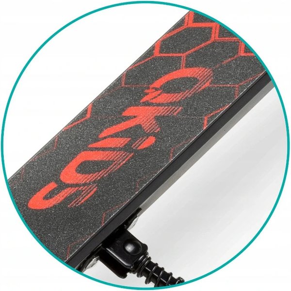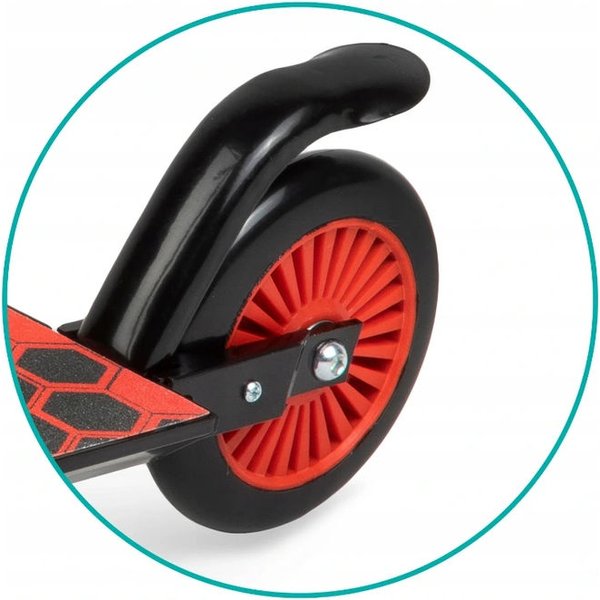 d warunków nawierzchni. Hulajnoga posiada również wzmocniony podest, który pozwoli dziecku stanąć pewnym krokiem stanąć na niej i ruszyć przed siebie.