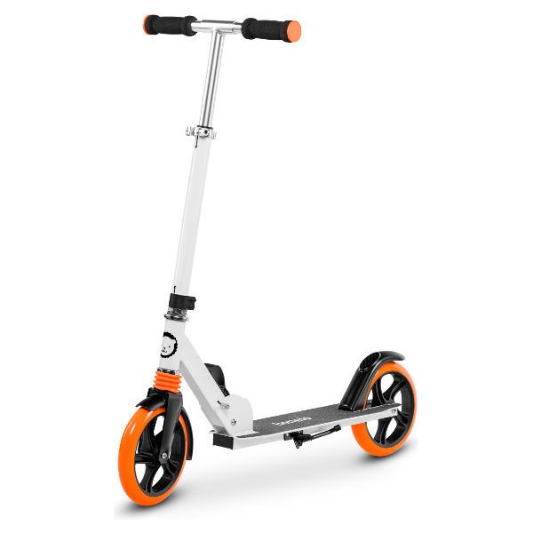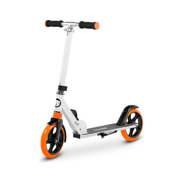 Kierownica hulajnogi wyposażona jest w specjalną amortyzację ShockResist, która zapewnia maksymalną stabilizację i komfort jazdy. Dodatkowym udogodnieniem jest amortyzator na przednim kole produktu. Amortyzatory oraz łożyska klasy ABEC-7 połączone z poliuretanowymi kołami PU high rebound 200mm znacznie ograniczają wstrząsy wywołane jazdą po złej nawierzchni, zmniejszają opory toczenia i pozwalają na szybszą jazdę. Hamulec tylny pełni funkcję błotnika, dzięki czemu jazda po mokrej nawierzchni nie jest problemem. Ergonomiczne uchwyty, w które wyposażona jest kierownica pojazdu pozwalają na odciążenie dłoni podczas długich podróży.