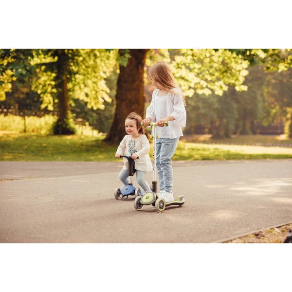 Hulajnoga Evo Lights od Globber posiada cztery różne zastosowania, co sprawia, że rośnie z dzieckiem, a każdy maluch znajdzie w niej to co lubi najbardziej! To zapewni wiele wspaniałych godzin spędzonych na świeżym powietrzu. Co kryje w sobie model Evo Lights? Jeździk z prowadnikiem, hulajnogę z prowadnikiem i klasyczną, rowerek biegowy. Lekka i solidna konstrukcja pozwoli na przyjemną jazdę, a obecność trzech kółek zagwarantuje odpowiednią stabilność. Dzięki temu maluch będzie mógł poczuć się pewnie na swoim nowym pojeździe. Kierownica wykonana została z aluminium, a deck z tworzywa polipropylenowego, który został wzmocniony włóknem szklanym. Regulowana kierownica pozwoli dostosować ją idealnie do wzrostu dziecka, a na początek drogi z jeździkiem przydatne będzie siedzisko (regulowane w 2 poziomach) na, którym dziecko będzie mógło się wygodnie rozsiąść. Skręcanie za pomocą balansu ciała pozwoli dziecku na szlifowanie swoich umiejętności. Można również zablokować skręt za pomocą guzika z przodu hulajnogi.