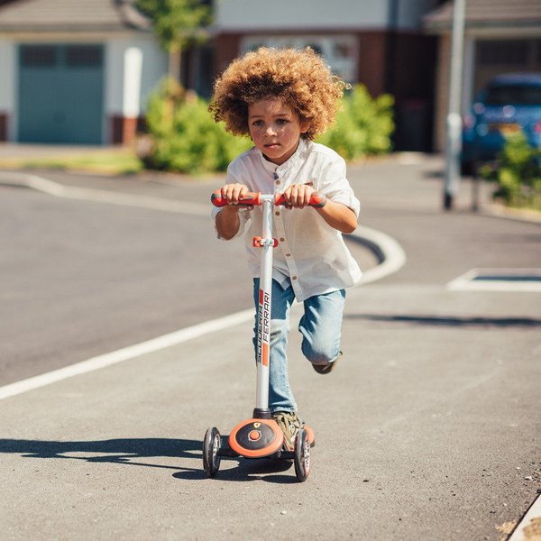 Hulajnoga trójkołowa Globber przeznaczona dla najmłodszych! Maluch może rozpocząć na niej swoją przygodę z samodzielną jazdą i poszerzać swoje zdolności motoryczne. Jest niezwykle lekka, co sprawia, że maluch nie będzie miał problemu z jej prowadzeniem! Zachwyca ona nie tylko wyglądem, ale i precyzją wykonania. Aluminiowa kierownica, którą można regulować (4 poziomy) pozwoli na idealne dopasowanie jej do wzrostu dziecka. Rączki wykonane zostały z trwałego materiału TPR. Skręcanie możliwe jest przy pomocy balansu ciała co pozwala dziecku na ćwiczenie koordynacji. Trzy kółka zapewnią maluszkowi odpowiednią stabilność. Będzie mógł się poczuć pewnie i przemierzać wiele kilometrów. Wykonane z wysokiej jakości tworzywa PU zapewnią odpowiednią przyczepność, łożyska ABEC-5 wspomogą płynną jazdę niezależnie od rodzaju nawierzchni. Obniżony deck wykonany z twardego i grubego tworzywa dodatkowo wzmocniony został włóknem nylonowym. Z taką hulajnogą jazda bezie niezwykle przyjemna, a maluch będzie mógł spokojnie nabywać zdolności.