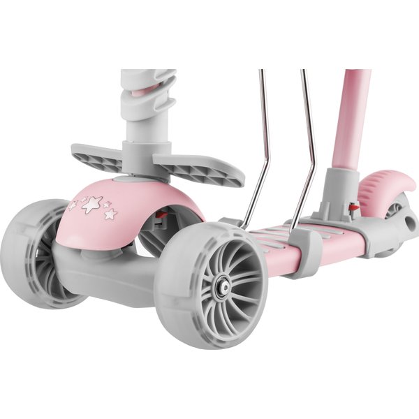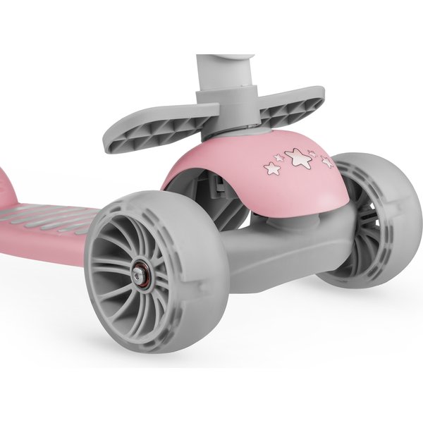 Modny, pastelowy kolor urzeknie każdą dziewczynkę i zachęci do jazdy. Jednak to nie koniec atrakcji dla najmłodszych. Zamontowany z przodu zdejmowany koszyk umożliwia przechowanie picia lub ulubionej maskotki podczas jazdy. Przednie kółka z diodami LED świecą podczas jazdy sprawiając, że jazda jest jeszcze bardziej radosna.