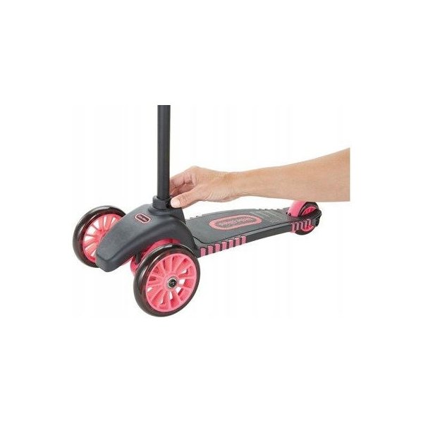 Hulajnoga trzykołowa od Little Tikes zapewnia bezpieczną zabawę przez wiele godzin. Podczas jazdy, wszelkie manewry skręcania odbywają się poprzez balans ciałem. Duże, skrętne kółka będą świetnie się prowadzić po różnego rodzaju nawierzchniach, a funkcja redukcji hałasu sprawi, że przejażdżka będzie komfortowa. Dodatkowo dla większego bezpieczeństwa hulajnoga została wzbogacona o hamulec nożny znajdujący się na tyle podestu.