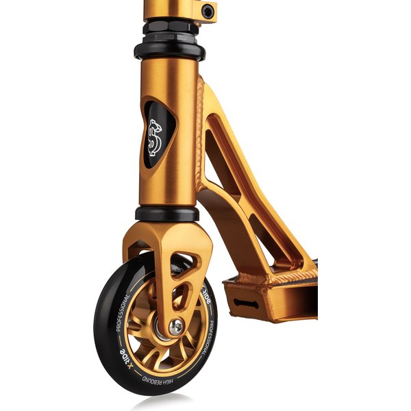 W hulajnogach typu stunt o amortyzacji, wytrzymałości i możliwości osiągania dużych prędkości decydują kółka. W ST100 kółka mają średnicę 110mm, co wpływa na właściwości jezdne hulajnogi, takie jak przyspieszenie, prędkość, stabilność i manewrowość. Twardość kółek wynosząca 82A zapewnia lepszą przyczepność do podłoża oraz absorbowanie wstrząsów. Kółka wykonano z tworzywa PU z serii High Rebound, co z kolei przekłada się na poziom sprężystości. Aluminiowy rdzeń kółek tzw. Alu Core zapewnia utrzymanie łożysk w prawidłowej pozycji oraz zwiększa wytrzymałość kółek przy dodatkowych obciążeniach.