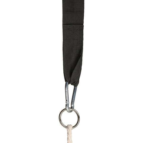 - w zestawie: 2 pasy (50 x 5 cm), 2 karabińczyki, nakładki na przednie sznurki, instrukcja, huśtawka do samodzielnego, łatwego montażu