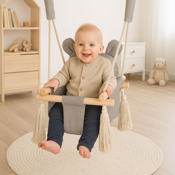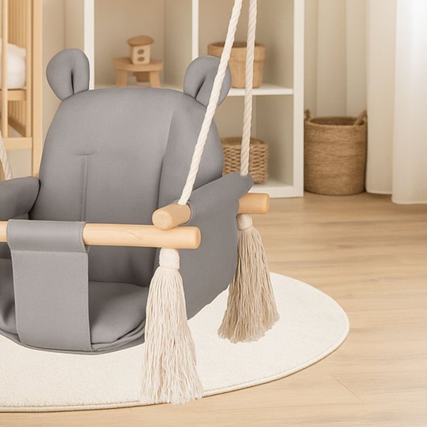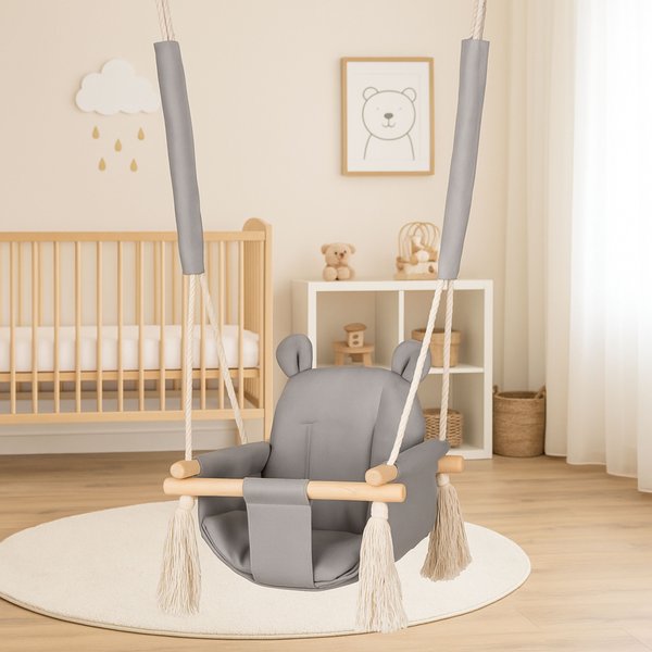 Huśtawka Miś wykonana została z najwyższych jakościowo materiałów, by konstrukcja była zarówno solidna i wytrzymała, jak i miękka oraz niezwykle wygodna dla malucha. Siedzisko oraz oparcie zapewni swobodę i nie ograniczy ruchów, by maluch czuł się komfortowo.