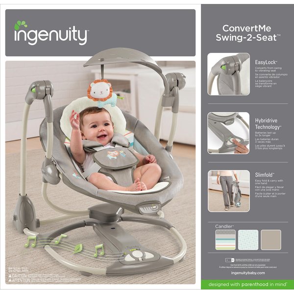 - technologia InGenuity WhisperQuiet zapewniająca ciche działanie huśtawki, dzięki czemu nie będzie zakłócać snu dziecka oraz przeszkadzać jego opiekunom (wykorzystanie siły magnetycznej zamiast standardowych silników stosowanych w innych huśtawkach)