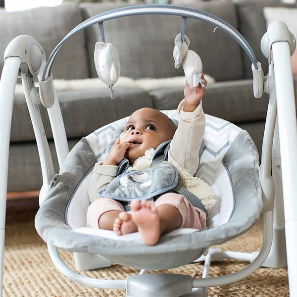 • huśtawka do zabawy i relaksu maluszka, wyposażona w 5 prędkości bujania, dzięki czemu bez problemu dopasuje się do potrzeb dziecka