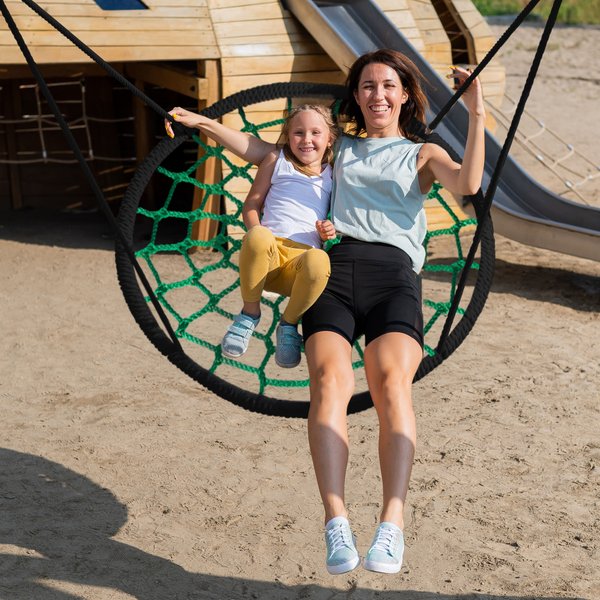 Z huśtawki ucieszy się cała rodzina. Maksymalny udźwig tego modelu to aż 150 kg. Dlatego może przebywać na niej kilka osób równocześnie. Model jest odpowiedni zarówno dla dzieci, jak i dla dorosłych.