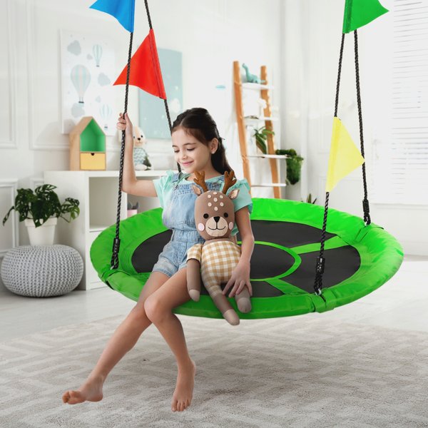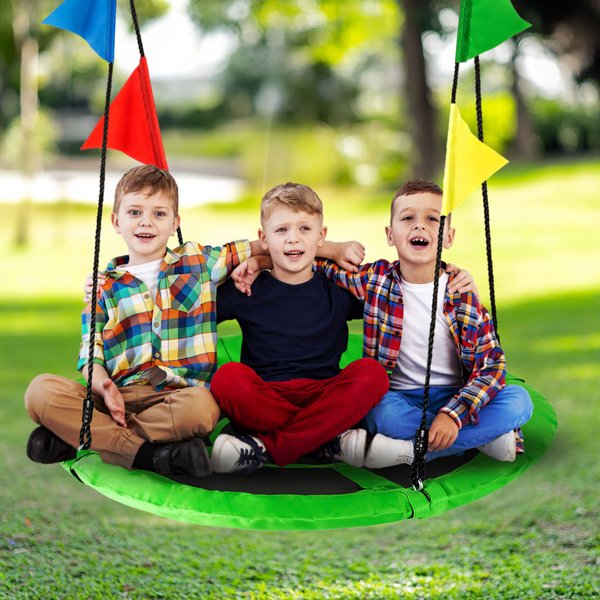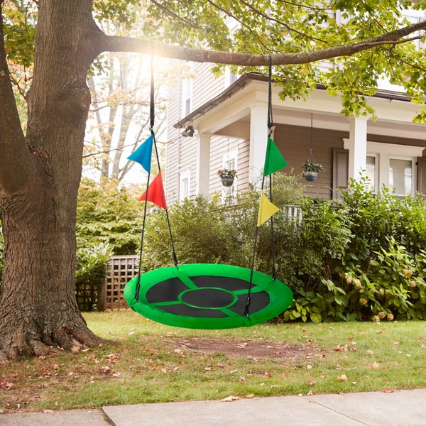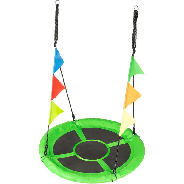 Sprawdzi się idealnie do dziecięcych zabaw oraz wypoczynku po ciężkim dniu. Obszerne i okrągłe siedzisko o średnicy 100cm sprawia, że obędzie się bez kłótni o pierwszeństwo, bowiem dzieci mogą siedzieć na huśtawce razem. Mocne liny i trwałe materiały sprawiają, że maksymalne obciążenie huśtawki wynosić może aż 150kg. Co więcej, liny są regulowane w zakresie od 100 do 160cm, co pozwala na dostosowanie wysokości huśtawki do wzrostu dzieci, by maksymalnie ułatwić im wchodzenie i schodzenie.