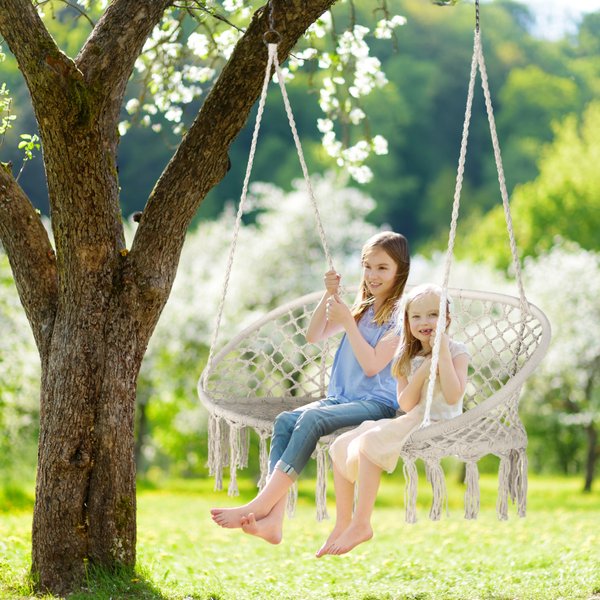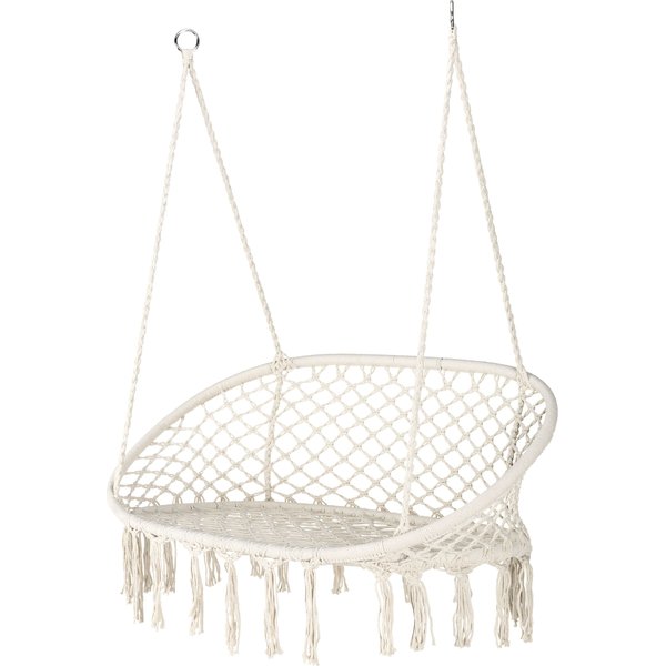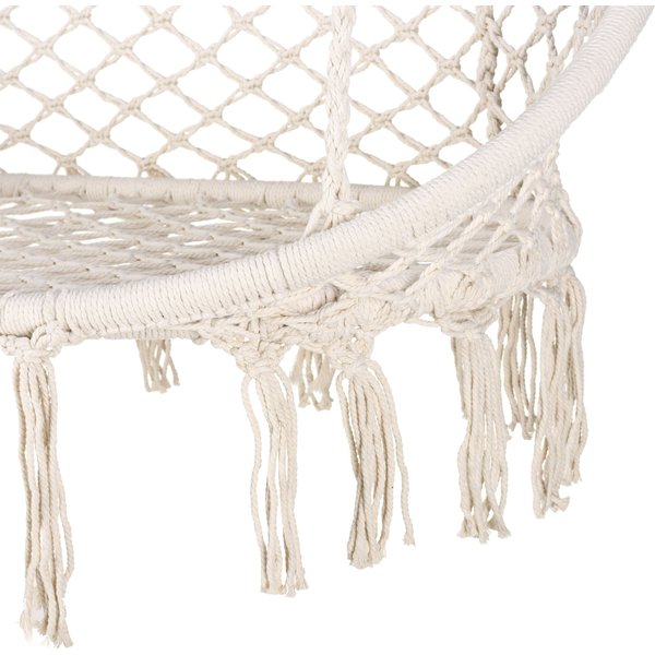 Huśtawka świetnie się prezentuje, co wynika z wysokiej jakości wykonania. Modny styl Boho wpasuje się w domową przestrzeń. Delikatna kolorystyka i frędzle sprawią, że Twoje mieszkanie będzie przytulniejsze.