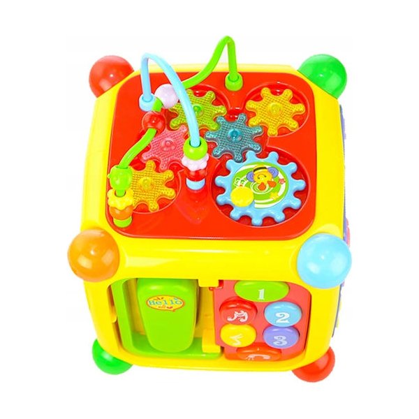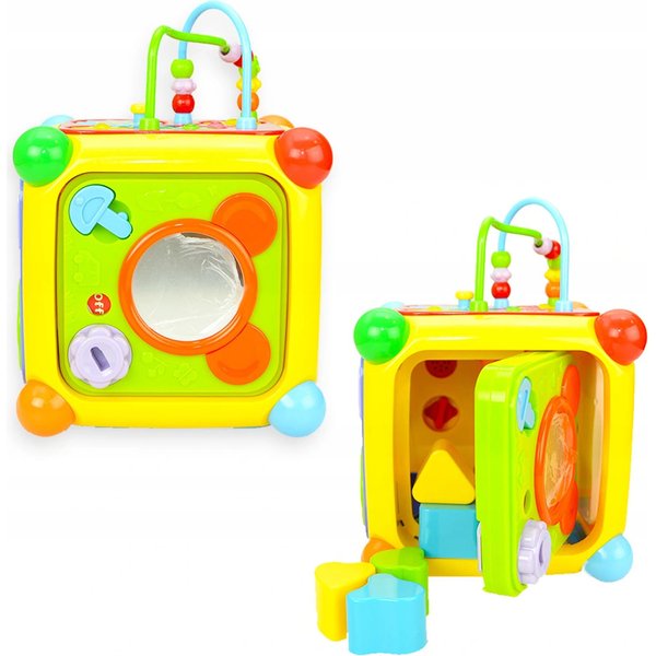 Kostka edukacyjna z bogatym wyposażeniem, które z pewnością zachwyci maluszka. Wybierając zabawki dla malucha kierujemy się nie tylko bezpieczeństwem podczas użytkowania, ale również funkcjonalnością i walorami edukacyjnymi. Ta zawierająca wiele niespodzianek kostka zapewni szeroko pojęty rozwój na wielu płaszczyznach. Maluch będzie mógł pobudzać swoje zmysły, nabywać nowych umiejętności przydatnych w dalszym życiu, a przy tym spędzić wiele godzin na wspaniałej zabawie.