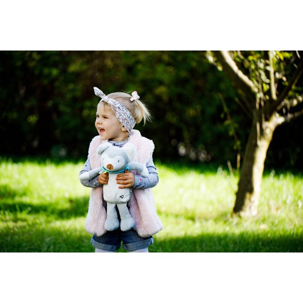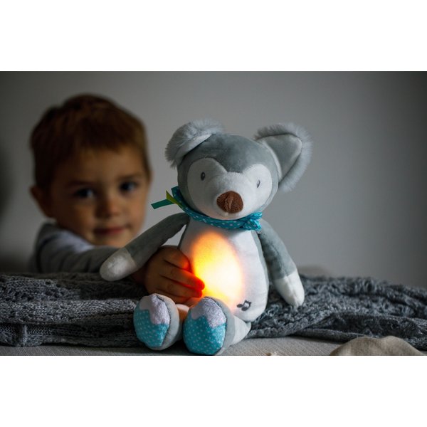 Wykonany z przyjemnego w dotyku materiału pluszak sprawdzi się od pierwszych dni życia, a z czasem maluch zacznie odkrywać wszystkie jego możliwości i pokocha urocze zwierzątko. Twoja pociecha może sama uruchomić schowany w brzuszku mechanizm ze światełkami i melodiami. Uspokajające szumy i kołysanki uspokoją markotnego malucha nocy, a w dzień rozweselą go przyjemne melodyjki. Specjalny mechanizm ze światełkami i dźwiękami możesz, w zależności od potrzeb, wyjąć i użytkować poza zabawką. Jest on całkowicie bezpieczny dla maluszka i nie nagrzewa się, nawet jeśli jest schowany we wnętrzu pluszaka.
