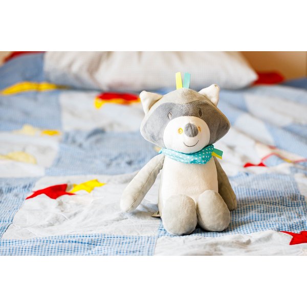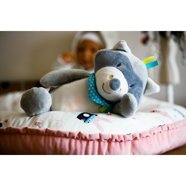 Wykonany z przyjemnego w dotyku materiału pluszak sprawdzi się od pierwszych dni życia, a z czasem maluch zacznie odkrywać wszystkie jego możliwości i pokocha urocze zwierzątko. Twoja pociecha może sama uruchomić schowany w brzuszku mechanizm ze światełkami i melodiami. Uspokajające szumy i kołysanki uspokoją markotnego malucha nocy, a w dzień rozweselą go przyjemne melodyjki. Specjalny mechanizm ze światełkami i dźwiękami możesz, w zależności od potrzeb, wyjąć i użytkować poza zabawką. Jest on całkowicie bezpieczny dla maluszka i nie nagrzewa się, nawet jeśli jest schowany we wnętrzu pluszaka.