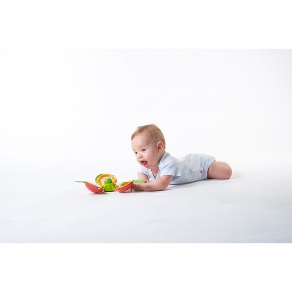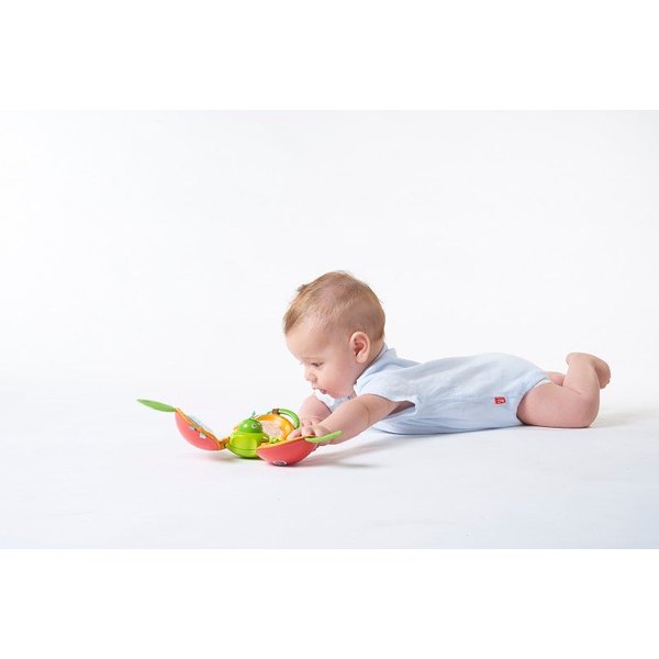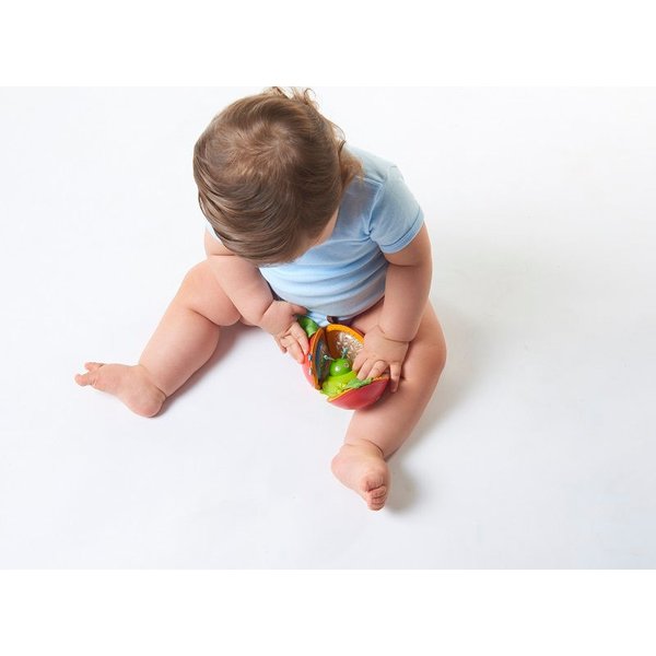 Interaktywne jabłuszko to świetna zabawka dla dziecka ciekawego świata. Jabłuszko posiada kółeczko w kształcie kwiatu, które wprawione w ruch obraca się. Elementy szeleszczące i grzechoczące z pewnością zaciekawią dziecko i pobudzą jego zmysły. Jabłuszko ma też lusterko, w którym maluch będzie mógł poznać swoje odbicie oraz kolorowe kółeczka, którymi można poruszać. Na środku umieszczona jest wesoła dżdżownica, która wyskakuje i chowa się do swojego domku. Zabawka posiada okrągły zaczep, który pozwala na zawieszenie w wózku, łóżeczku, na macie edukacyjnej czy foteliku samochodowym.