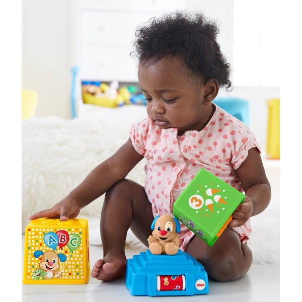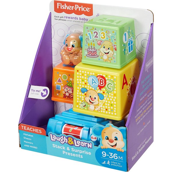 Interaktywne prezenciki to kolejna zabawka z serii Ucz się i Śmiej od Fisher Price. Tym razem Szczeniaczek Uczniaczek zaprasza do wspólnej zabawy w układanie wieży z kolorowych prezentów!
