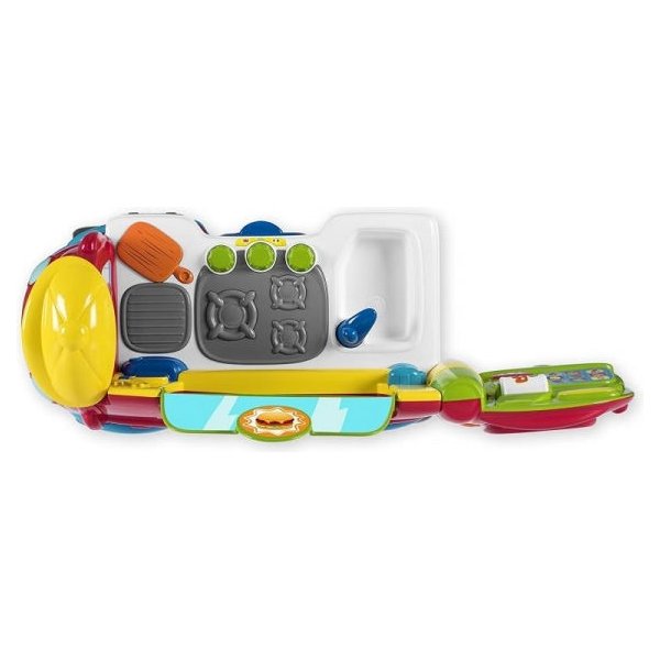Kuchnia znajdująca się w footrucku Chicco stworzona została na wzór prawdziwej kuchni, przez co będzie dobrą zachętą do nauki gotowania.