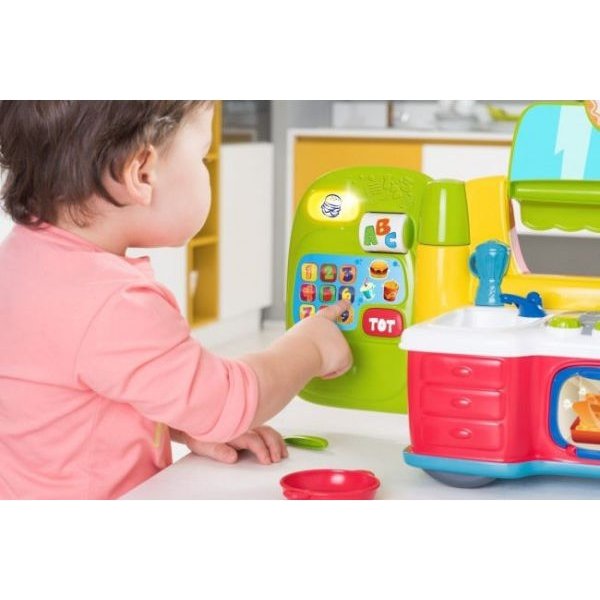 Znajduje się tam również panel, który pomoże w nauce potraw oraz liczb. Dodatkowym ciekawym rozwiązaniem jest dwujęzyczność zabawki - możesz więc pomóc dziecku stawiać pierwsze kroki w nauce języka angielskiego poprzez zabawę.