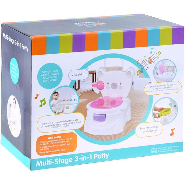 Model ten oferuje każdemu maluszkowi nie lada atrakcję podczas załatwiania potrzeb fizjologicznych. Wbudowany czujnik po wykryciu cieczy uruchamia radosny dźwięk, który nagradza maluszka. Kształt nocnika przypomina dorosłą toaletą - jest tu zarówno spłuczka, jak i uchwyt na papier toaletowy. Bez problemu możesz go wyczyścić, usuwając zawartość dzięki opcji wyjmowania wewnętrznego pojemnika.