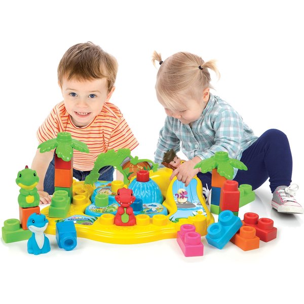 Zestaw pełen kolorowych klocków i figurek to frajda dla każdego malucha! Może stworzyć swój własny prehistoryczny park dinozaurów i odgrywać wymyślone historie. Jest tu jaskiniowiec i trzy kolorowe dinozaury. Postaw jedną z figurek na specjalnym panelu, by usłyszeć realistyczny odgłos - ale frajda!
