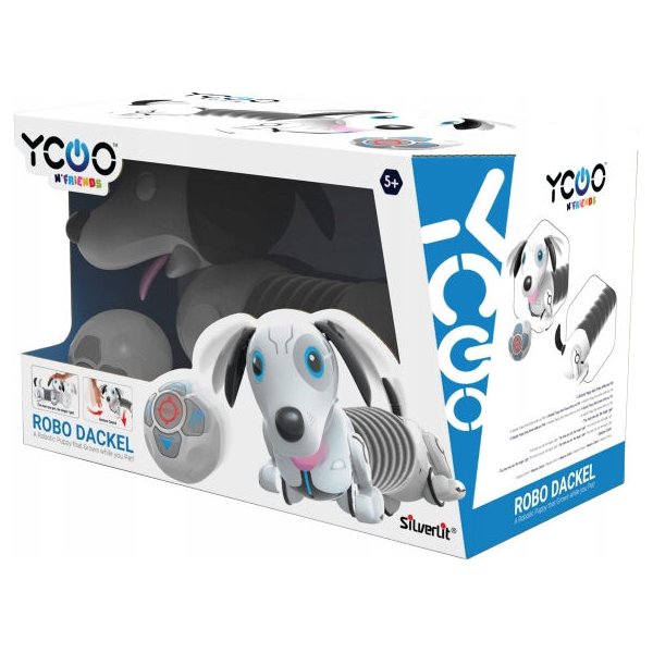 Interaktywny piesek Robo Dackel to urocze stworzonko, które będzie podążało za swoim właścicielem gdziekolwiek ten wyruszy. Jak to piesek lubi gonić swój ogon i potrafi wykonywać wiele innych sztuczek, które koniecznie musisz zobaczyć. Szczeniaka poprowadzisz dzięki wielofunkcyjnemu pilotowi, który jest dołączony do zestawu. Przypomina on kształtem piłkę, więc będziesz mógł się z nim pobawić w łapanie zabawki. Nie myśl, że to wszystko! Dackel zachowuje się jak prawdziwy piesek! Potrafi zaszczekać i merdać ogonem, a dodatkowo kurczy się lub rozciąga do długości 45 cm. Wystarczy, ze dotkniesz jego głowy. Przygarnij tego cudnego pieska, a spędzicie razem wiele radosnych chwil.