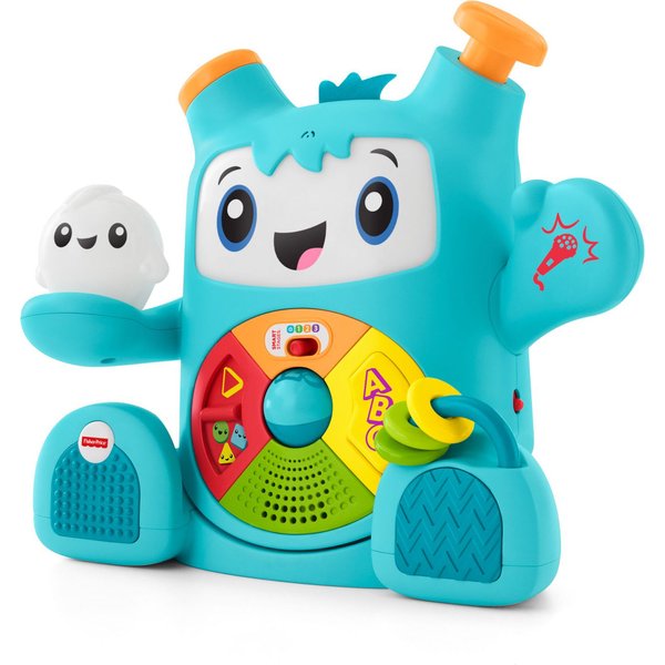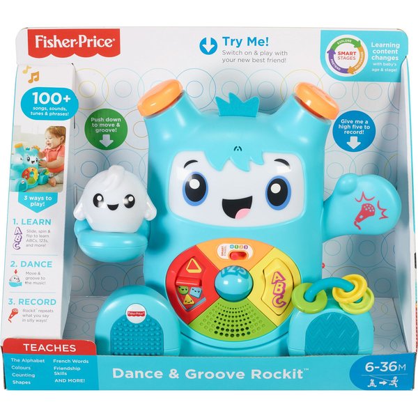 Interaktywny przyjaciel Rockit marki Fisher Price pomoże maluchowi w nauce liczb, słówek po angielsku, alfabetu, kolorów, kształtów i innych ciekawych rzeczy. Robocik świeci na różne kolory i tańczy! Ponad to możne nagrać słowa i potworzyć je jednym z 3 śmiesznych głosów! Zabawy nie ma końca!
