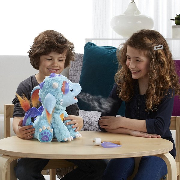 Zwierzaczek zachowuje się jak prawdziwa mały smok. Można go nakarmić jego ulubionym przysmakiem - pianką lub przytulać i głaskać.
